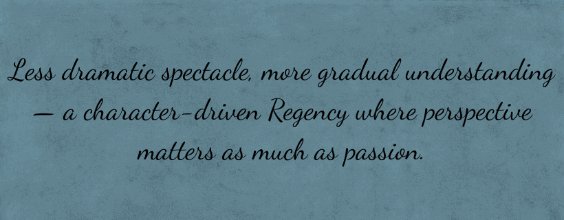 Readers looking for a fast-moving, high-drama romance might find it measured. But if you enjoy slow-burn growth, thoughtful character development, and a Regency world that feels a little more textured beneath the surface, this one delivers.